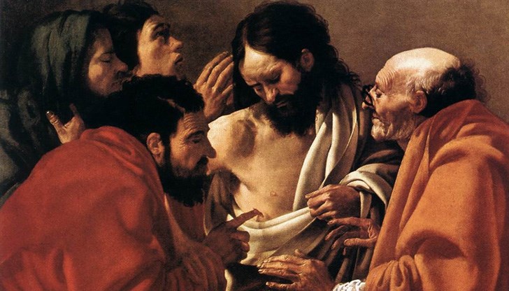 В него се разказва как Тома не повярвал на разказите за възкресение Христово, докато не видял със собствените си очи раните от гвоздеите и от пробитото копие в ребрата Христови. Изразът Тома неверни е станал нарицателен за недоверчив човек.