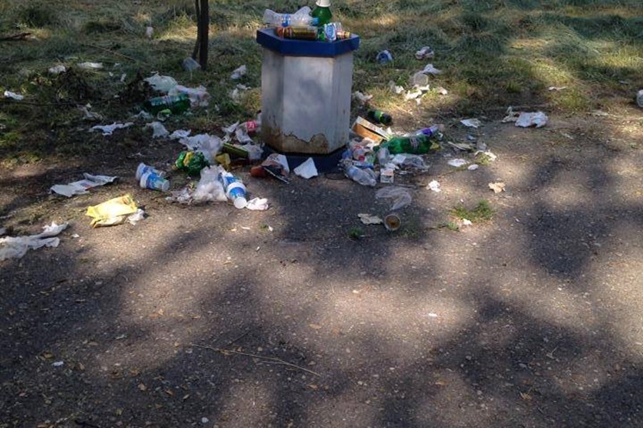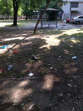 На вниманието на Община Русе! Това е положението с кофите за боклук от поне 14 дни в градинката между блоковете "Комсомолец" и "Дружба" в кв. "Възраждане".