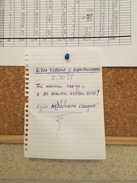 Men.bg сподели в социалната мрежа бележка на поизнервена съседка.