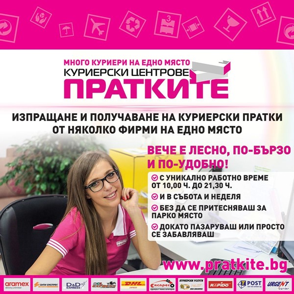 Както вече сме съобщавали, “ПРАТКИТЕ” са уникален по рода си проект, който обединява услугите на много куриерски фирми в един рецепционен офис. Те отвориха първия си офис преди малко повече от два месец в Mall Rousse. След като в началото включените куриерски компании бяха седем на брой, вече в „ПРАТКИТЕ“ може да изпращате или получавате пратки от единадесет световни и български куриерски фирми.