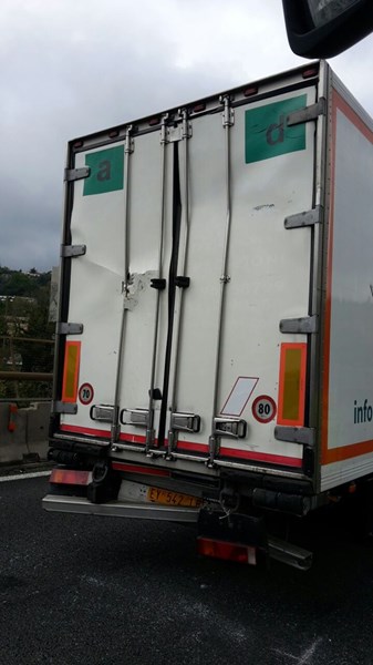 Тирът е понесъл малки щети, докато неговият шофьор не е бил засегнат.