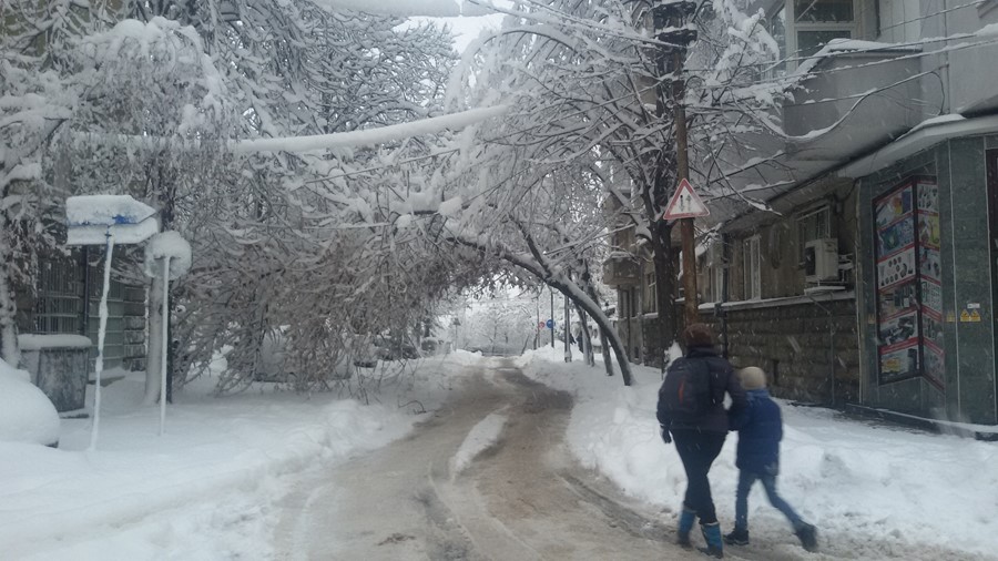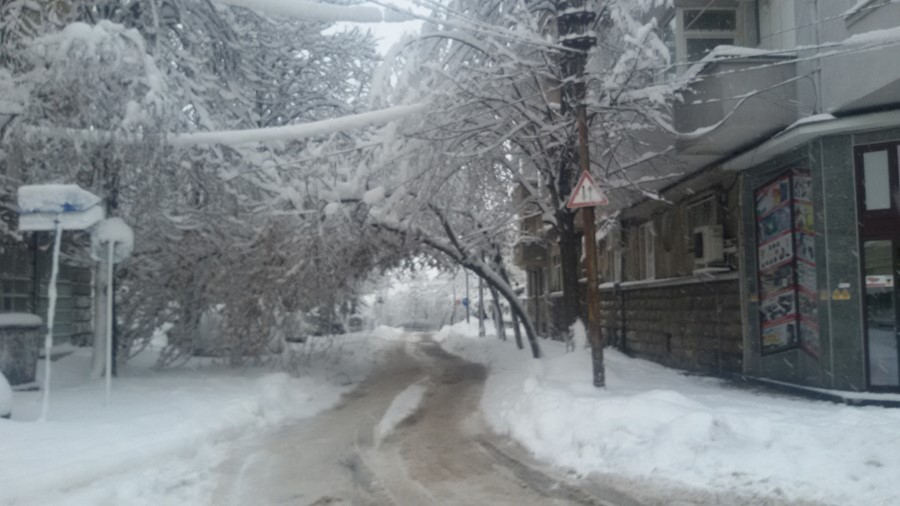 Още вчера на кръстовището до кукления театър се образува арка от дърветата, чиито клони са били брутално извити от силния вятър.