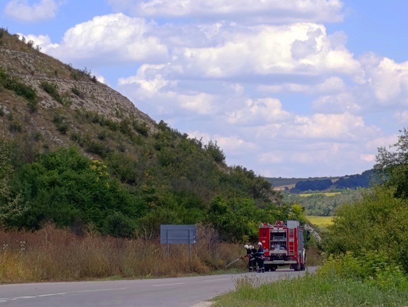 Пожарът пламна вчера около 12:30 часа в началото на село Бъзовец, община Две могили. Според местните жители той е предизвикан умишлено при силен вятър, което създало сериозна заплаха за населеното място.
