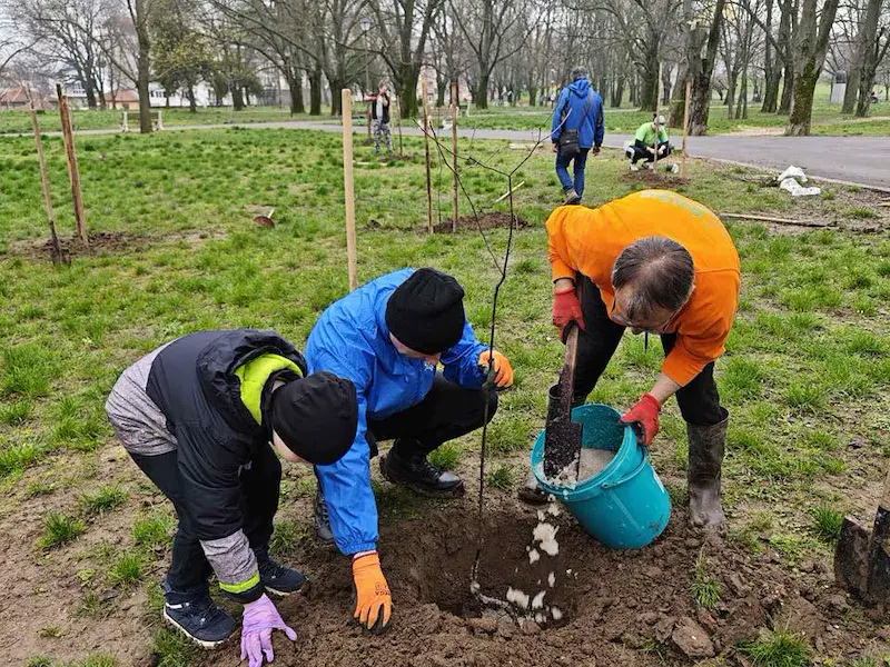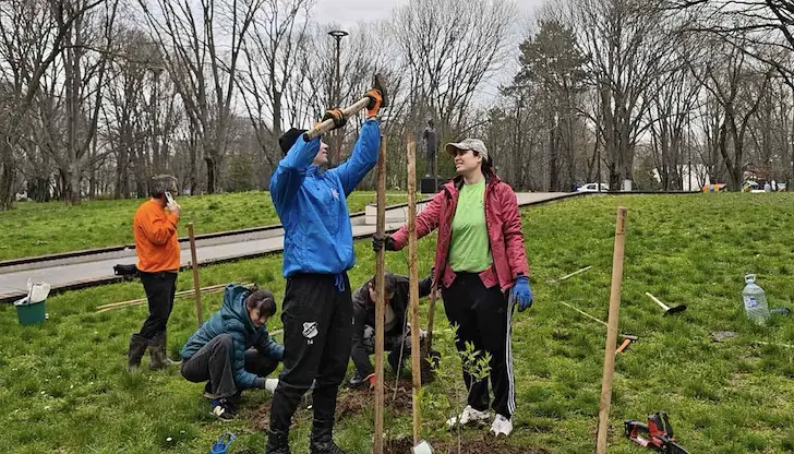 Доброволци засадиха червени дъбове и люляци в Парка на възрожденците