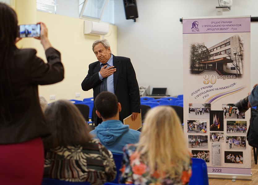 Кметът на Русе награди със златна значка бившия директор на училището Стойко Димитров