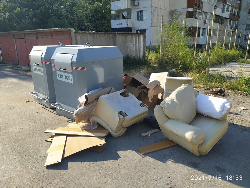Това е резултатът, когато 2 дена не е минавало камиончето за събиране на боклука извън контейнерите - бл 112 кв. Чародейка.
