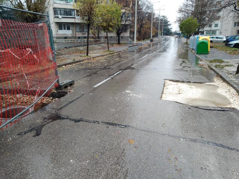 Живея в жилищен блок "Лом" на улица "Доростол". От няколко месеца в близост до блока ми има огромни изкопи, които са направени за присъединяване към водопровод и канал на новострояща се жилищна кооперация. Отначало бяха оградили само част от платното и тротоара, след това разкопаха и отсрещния тротоар и асфалта на платното пред него. Дълго време стоя така. След това запълниха с чакъл единия изкоп, но направиха още по-голям и по-дълбок от другата страна.