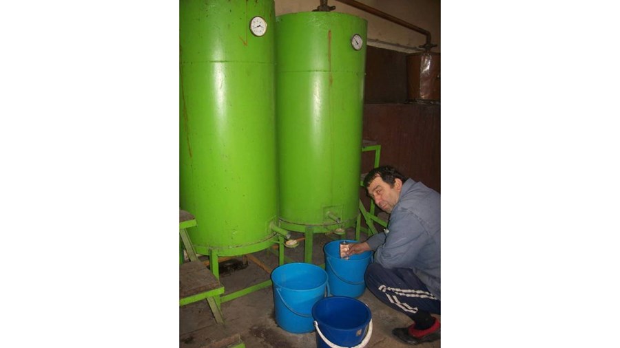 Колко ракия може да изтече от един 300-килограмов казан? Тук също има условности. Ако клиентът е изпил до дъно виното, то може да се изкара и само 10-15 литра „огнена вода“. Но има ли повече вино вътре, добитата ракия може да стигне и 40 литра.