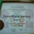 Това не е първият голям успех на Дона-Мария Иванова. През шестте години в Математическа гимназия „Баба Тонка” – Русе тя е завоювала много призови места на националните състезания по математика, лингвистика, физика и няколко международни отличия. Най-големите успехи на Дона-Мария са:
