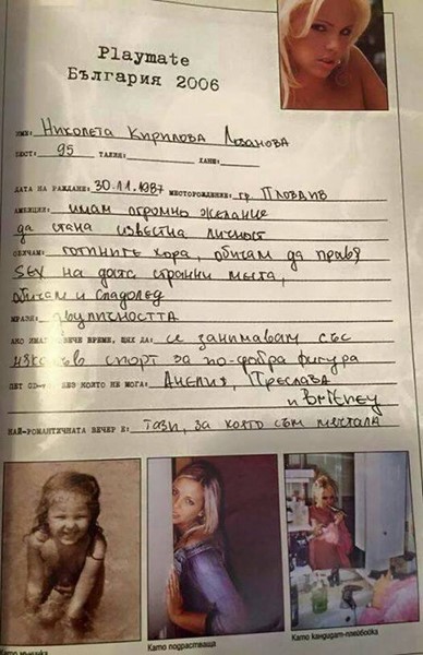 „Кандидатурата“ на Николета Лозанова през 2006 г. за участие в конкурса „Мис Плеймейт“ стана хит в мрежата 9 години по-късно.