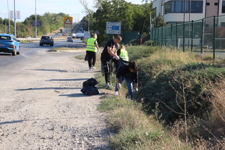 Впрегнаха служителите от Областна администрация - Русе да чистят силно замърсения район между двете кръгови кръстовища