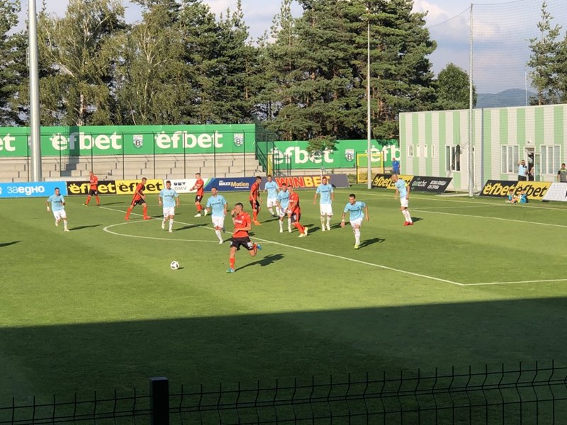Русенци изиграха много добро първо полувреме, като поведоха още в 4-та минута с гол на новото попълнение Ахмед Ахмедов и пропуснаха още няколко добри шанса за гол.