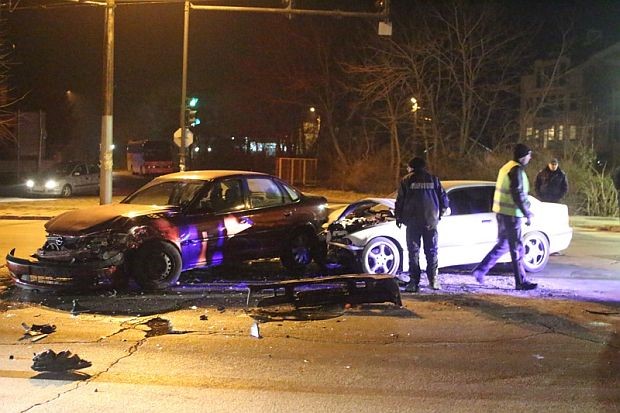 Дрифтър с "БМВ" се нацепи в "Опел" на зелен светофар