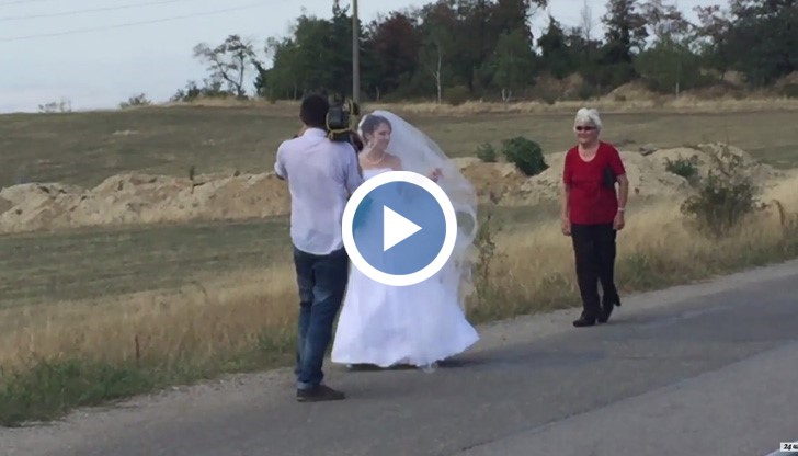 Пристигането на булката , както и цялото паметно събитие се заснемаше освен от наземни оператори и от кръжащ над множеството дрон, който умело се справяше с поривите на вятъра.