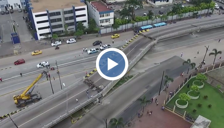 Дрон показа част от разрушенията в Еквадор, сред които и рухналия мост в крайбрежния град Гуаякил. До момента броят на загиналите е 272, а над 2000 са ранени.