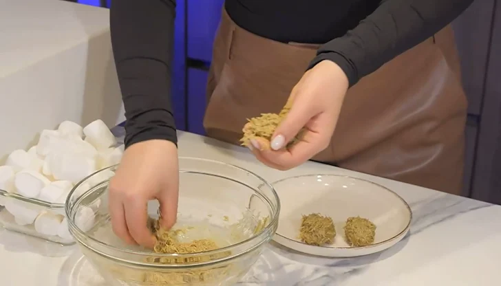 "Подготвили сме пистачо крем и кадаиф, който аз съм изпекла предварително. Това ще е по-лесната част, а за другата се приготви да се изцапаш – това са рисковете на кухнята", коментира Пауновска.