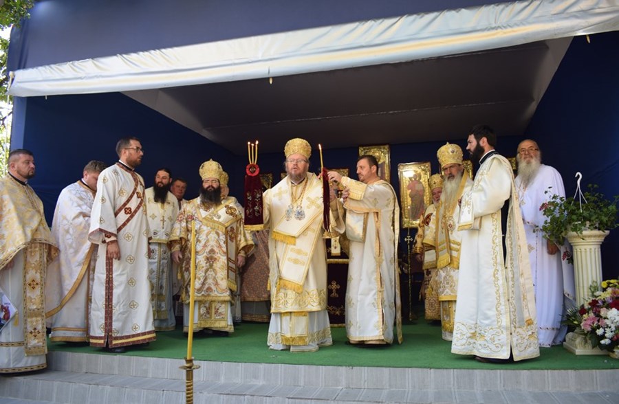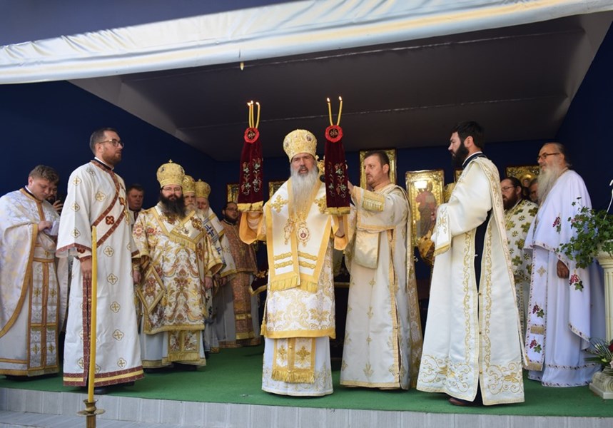 С благословението на Доростолския митрополит Амвросий празничната св. литургия, отслужена на открито в двора на храм „Св. Димитър”, беше възглавена от Негово Високопреосвещенство Русенския митрополит Наум с който съслужиха: Н. Впр. Теодосий, архиепископ на Констанца, Н. Пр. Висарион, епископ на Тулча, Мелнишки еп. Герасим, гл. секретар на Св. Синод на БПЦ, Тивериополски еп. Тихон, Велички еп. Сионий, архим. Василий, протосингел на Софийската митрополия, архим. Атанасий Султанов, протосингел на българската Западноевропейска епархия, ст. ик. Нелуц Оприа, официален представител на Румънския патриарх в България, и множество други духовници.