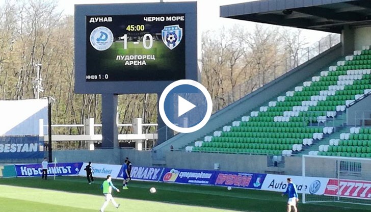 Така се стигна до 43-ата минута, в която централният бранител на гостите Стефан Станчев опита да върне с глава към Михайлов, но Будинов пресече паса и майсторски прехвърли вратаря на Черно море за 1:0. Секунди по-късно Дунав имаше възможност да удвои, когато четирима футболисти на домакините излязоха срещу двама гостуващи бранители, но Карагерен се подхлъзна и не успя да нанесе шут в решаващия момент.