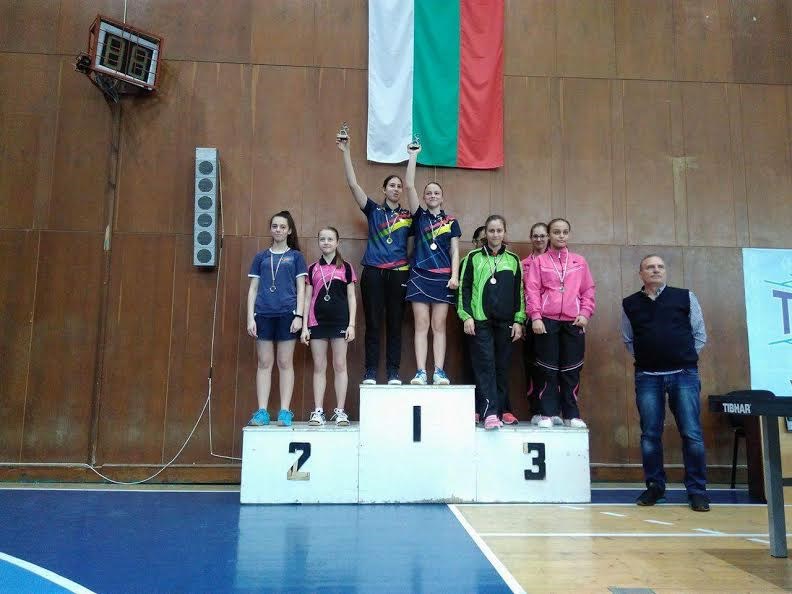 При двойки девойки Ванеса Цонева си партнира с Мария Сиракова от /”Стоянстрой” Пловдив/. Те изиграха пълен брой срещи и стигнаха до финал. Ценна победа извоюваха над Илиева/Андронова от “Две Могили”, които са национални състезателки. На финала при 1:1 гейма те водеха с 10:8 над Калина Христова и Димана Николова от “Корабостроител 92″ Варна! Шанса не бе на тяхна страна и пропуснатата възможност да поведат им коства и титлата.