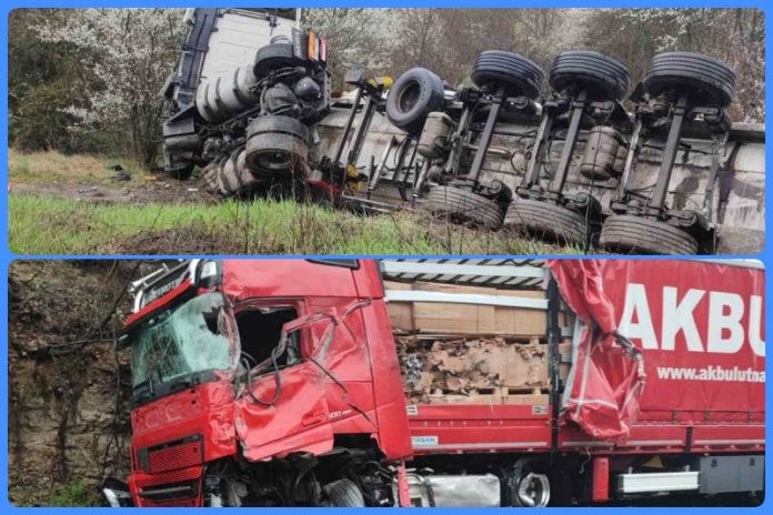 Тежкотоварен автомобил с румънска регистрация се удря в друг тежкотоварен автомобил с молдовска регистрация.