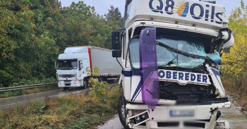 По първоначални данни 51-годишният турски водач и 37-годишният български шофьор не са сериозно пострадали.