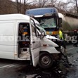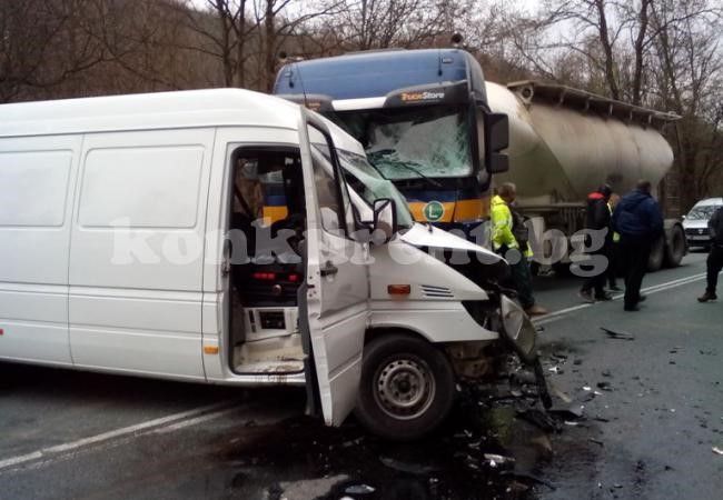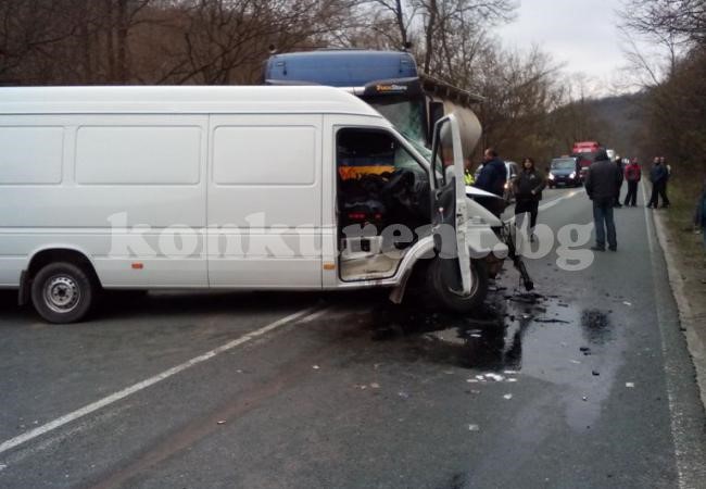 Движението по международния път Е-79 е преустановено заради сблъсъка на микробус в турски ТИР. При пътно-транспортното произшествие има ранени. Шофьорът на микробуса е закаран в болница. Екипи на Пътна полиция пренасочват движението на леките автомобили през Искърското дефиле.