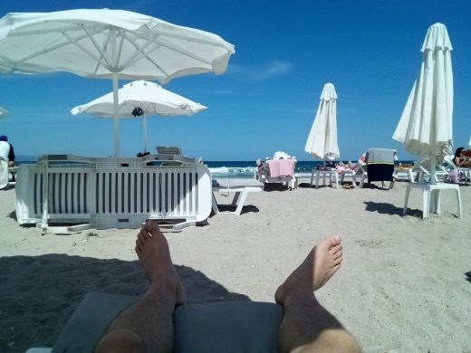 Море, шезлонги, чадъри, безметежно щастие - точно това излъчват двете последни снимки, направени от Христо Срeдев само три часа, преди той да загине трагично от удавяне край Поморие.
