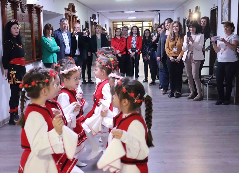 С кошнички в ръце и накичени с разноцветни венчета и китки, дванайсет момиченца от Детска градина „Синчец“ посетиха Областната администрация в Русе.