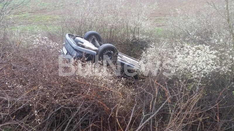 Днес случайно минаващ шофьор забелязал обърнатия автомобил, огледал за ранени и подал сигнал на тел.112. Малко преди обед пътна помощ извади смачканата кола и я транспортира към сервиз.