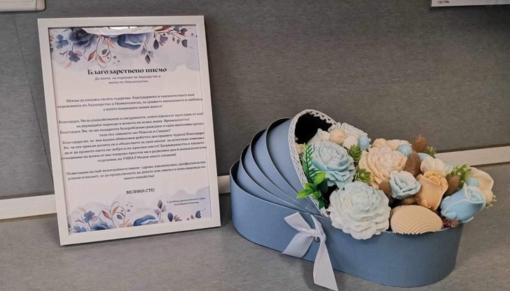 "Искам да изкажа сърдечна благодарност и признателност към отделенията по Акушерство и Неонатология за грижите, вниманието и любовта, с които посрещате новия живот!", сподели развълнувано госпожа Стоянова.
