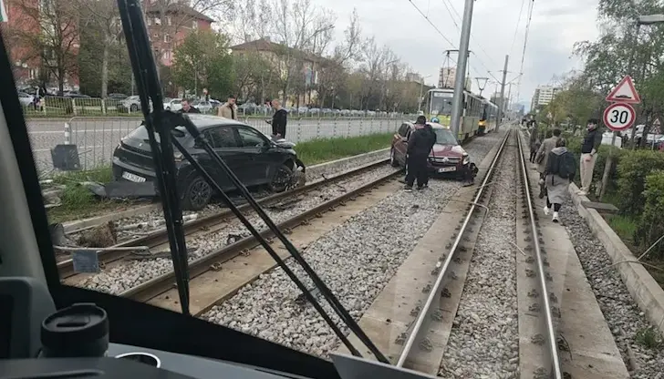 Два леки автомобила изхвърчаха върху релсите и блокираха трамвайното движение в София, съобщават от "Агенция Фокус".