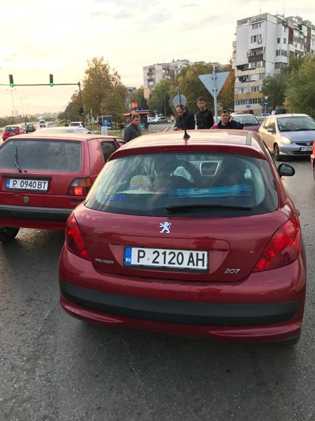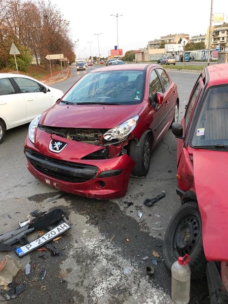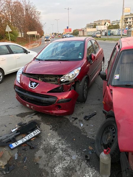 Ф. К. сподели кадри от мястото на инцидента, на които се виждат щети и по двете коли. Повече е пострадало "Пежо"-то, чиято предница е разбита.