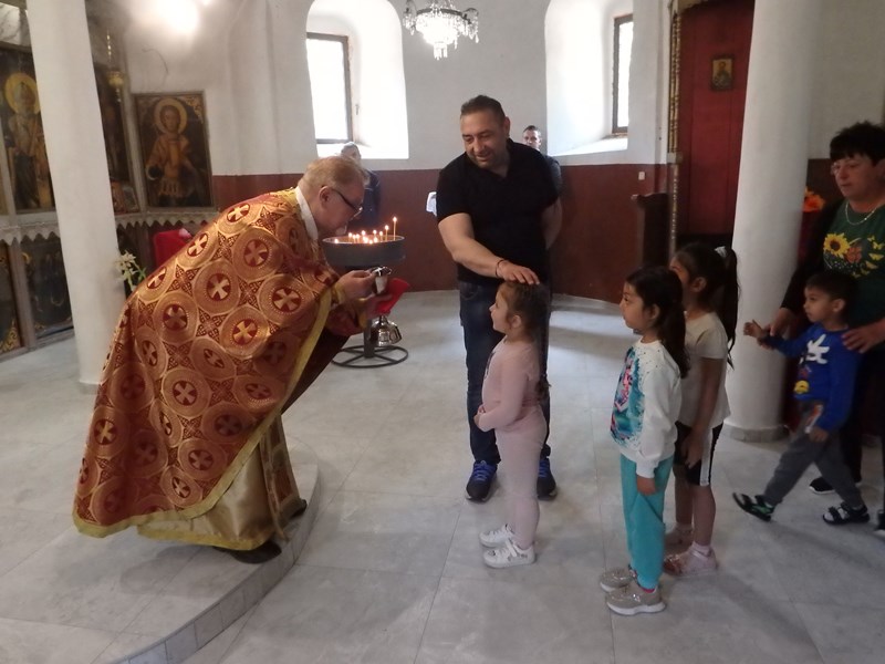 Празникът започна с тържествена Света литургия, отслужена от отец Михаил. В църквата присъстваха много деца и ученици, които запалиха свещички и се помолиха за здраве. Свещеникът благослови приготвения курбан и поръси със светена вода присъстващите, като им пожела здраве и благополучие.
