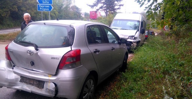 При първата, която стана около 11:40 часа, три коли, микробус и ТИР се блъснаха на разклона за село Пиргово. Според разказ на един от водачите, участвал в катастрофата, шофьорка на "Лада" е правила обратен завой на разклона, предаде briagnews.bg.