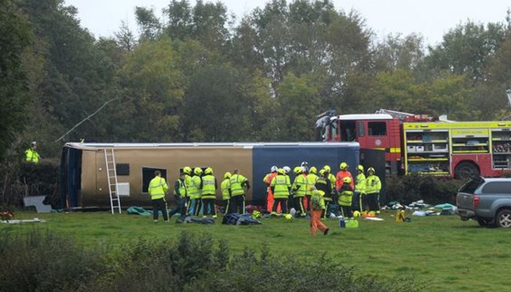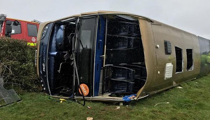Тридесет и седем души са ранени в събота, след като двуетажен автобус се преобърна в графство Девън в югозападна Англия, съобщиха от полицейското управление в Девън и Корнуол.