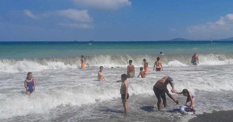 Въпреки предупреждението на спасителите, морето е пълно с хора. Във водата са най-вече деца, като повечето от тях са без родители.