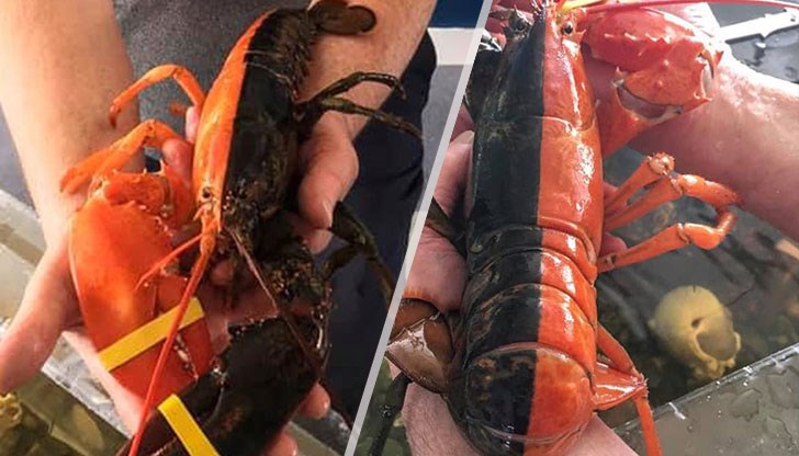 Странното създание, чиято окраска е равномерно разпределена - тялото му е наполовина кафяво и наполовина червено, е уловен край бреговете на Мейн от капитан Дарил Дънам. Вместо да го пъхне в тенджерата, рибарят предоставя омара на местен изследователски център.