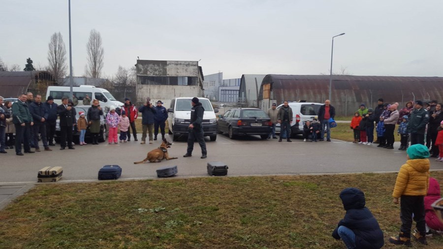 Децата видяха с интерес и демонстрациите на служебните кучета, които им показаха как откриват забранени вещества на ГКПП „Аерогара София“.