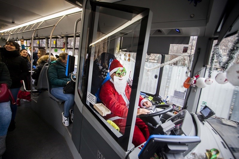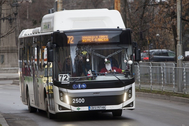 Дядо Коледа за втори ден е зад волана на автобус 72 в столицата.