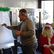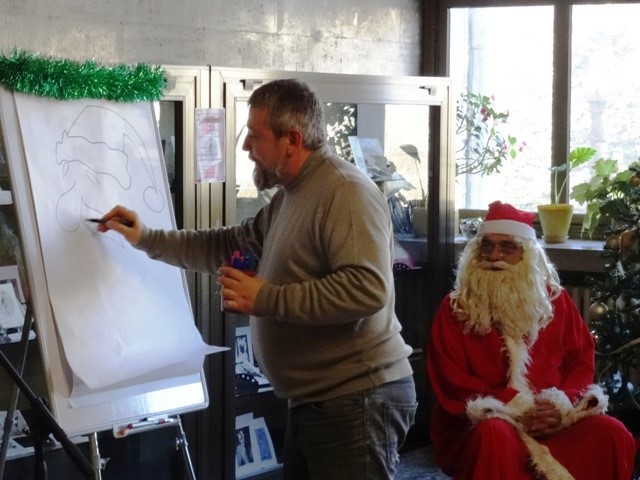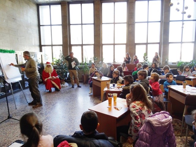 В началото на инициативата Стоян Стоянов представи на децата оригинални проекти на занимателни игри и комикси с коледна тематика, а от художника Валентин Георгиев те научиха как се рисува Дядо Коледа в комиксов стил. И точно когато добрият белобрад старец от Страната на комиксите „заговори” в своите балончета с думи, се появи истинският Дядо Коледа с пълен чувал с подаръци и изненади. Коледната работилница се превърна в шарен детски празник с много усмивки и настроение, в който децата твориха и се забавляваха истински!