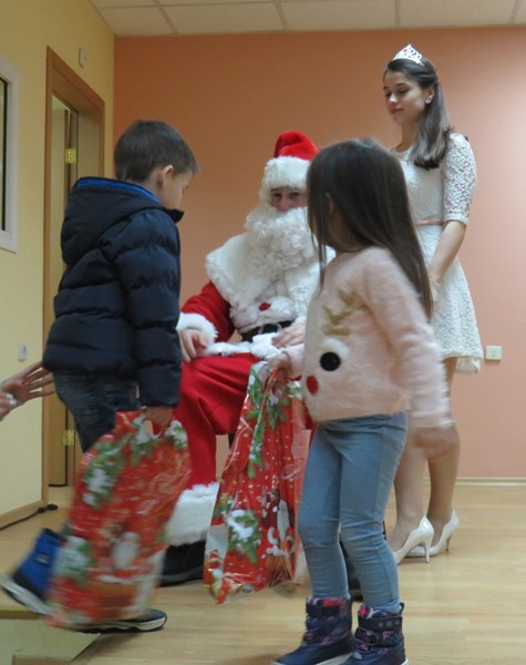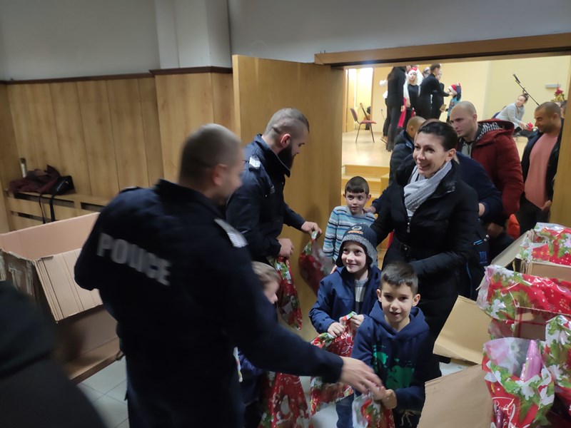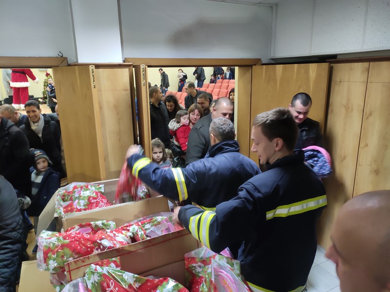 В това време в ролята на негови помощници влязоха униформени пожарникари и полицаи, които раздадоха коледните дарове на всички, доволни и въодушевени деца…