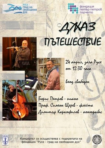 Днес, от 12:30 часа, в зала "Русе", Фондация "Петър Петров - Парчето" кани всички малки, големи и още по-големи любители на джаз музиката на образователния концерт "Джаз пътешествие". Събитието се организира с подкрепата на Общинска фондация "Русе - град на свободния дух".