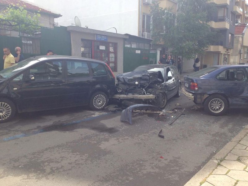 Според очевидци младият шофьор форсирал мощно "БМВ"-то си, изпуснал контрол и първо помел друг лек автомобил "БМВ", помествайки го с 3-4 метра от паркоместото му, а след това се забил и във "Форд" и „Фолксваген Голф“, спрени на синята зона на ул. "Трайчо Китанчев".