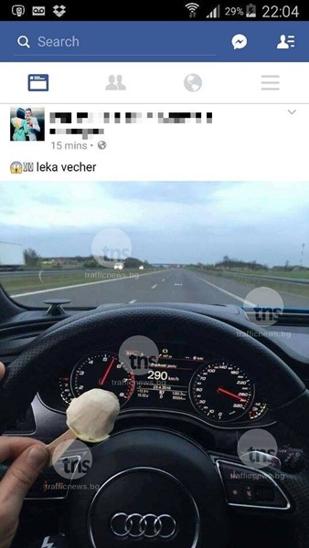 Млад шофьор натисна педала на газта на aудито си и вдигна 290 км/час, информира TNS.bg.