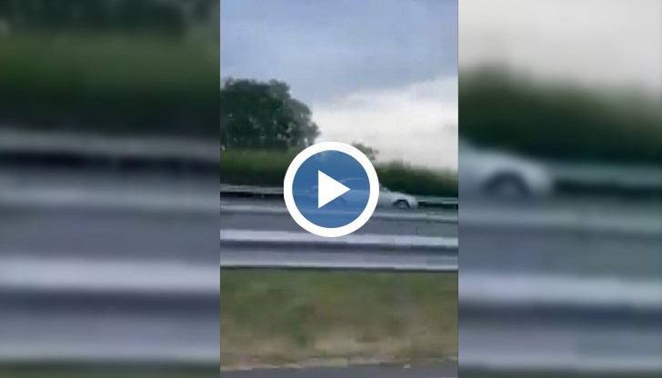 От кадрите се вижда как лек автомобил се движи изключително рисковано, с висока скорост, в аварийната лента в противоположна на трафика посока.