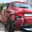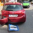 Лек автомобил мина на червен светофар в Русе, при което катастрофира и събори пътни знаци, спирайки на метри от спирка на градския транспорт, съобщи БГНЕС.