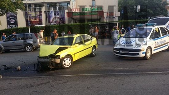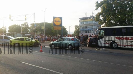 Шофьор на лек автомобил неизвестно защо преминал в другото платно на улицата и се забил последователно в три автомобила, полетът му свършил в паркиран на спирка автобус, информира Struma.com.