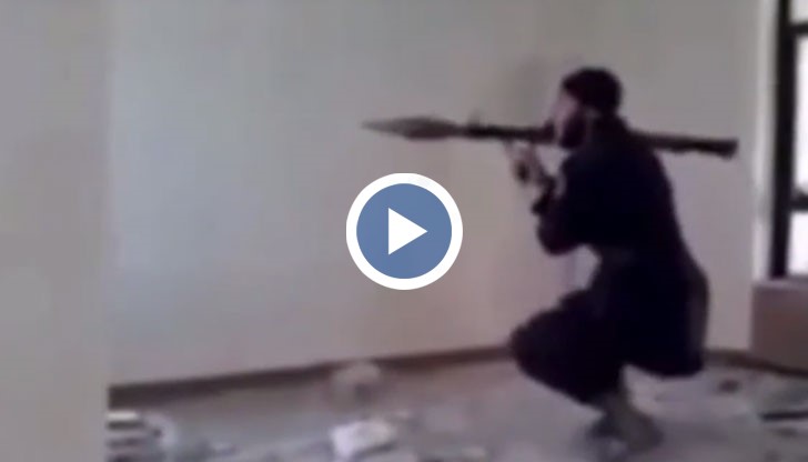 В мрежата бе публикуван видеозапис на който терорист от "Ислямска държава" се взривява случайно след като се опитва да демонстрира уменията си с ръчен противотанков гранатомет, информира "Мирър".