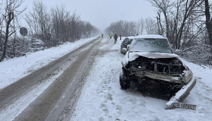 Пострадалите са транспортирани в болница, движението се затруднява от обилния сняг