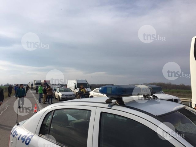 Преди минути полицията затвори матистралата при 131-ви километър.